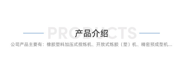 公司產(chǎn)品主要有:橡膠塑料加壓式捏煉機(jī)、開(kāi)放式煉膠(塑)機(jī)、精密預(yù)成型機(jī)、自動(dòng)橡膠過(guò)濾機(jī)、壓延機(jī)、切膠機(jī)、密煉生產(chǎn)線(xiàn)、擠出生產(chǎn)線(xiàn)、壓延生產(chǎn)線(xiàn)等。產(chǎn)品主要用于輪胎行業(yè)、密封件行業(yè)、膠管膠帶行業(yè)、電纜行業(yè)、醫(yī)用瓶塞行業(yè)、EVA、PVC等,產(chǎn)品廣泛用于橡膠電子零件、汽車(chē)零件、導(dǎo)電橡膠、工業(yè)用油封、油圈、運(yùn)動(dòng)器材、醫(yī)療器械及各式器皿等各種領(lǐng)域。